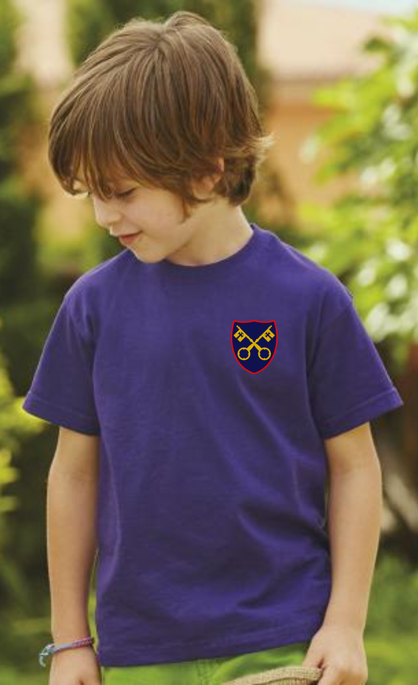 Navy t-shirt printed with St Gregory's Catholic Primary School logo on the front and Team St Gregory's on the back.